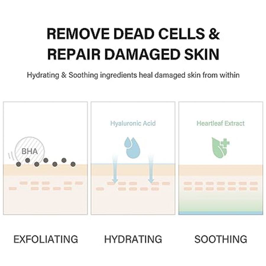 La formulazione è arricchita con estratto di Houttuynia Cordata, un ingrediente noto per le sue proprietà lenitive e purificanti, che calma e rinfresca la pelle, rendendoli perfetti anche per pelli sensibili. L'acido ialuronico, insieme ad altri attivi idratanti come il betaine e l'acqua di foglie di tè verde, assicura che la pelle rimanga morbida e idratata, evitando la sensazione di secchezza tipica dei trattamenti esfolianti.