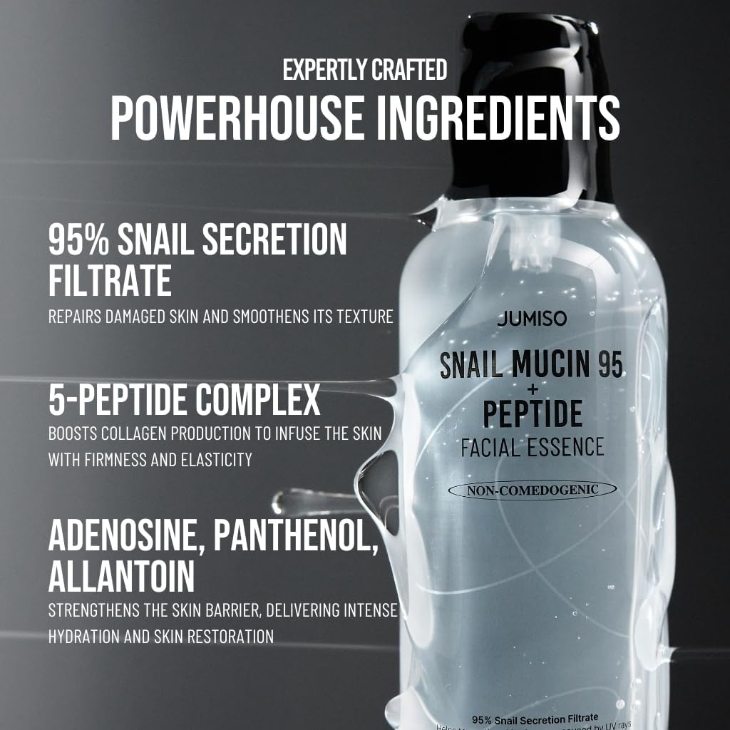 La JUMISO Snail Mucin 95 + Peptide Facial Essence 140ml è un’essenza viso coreana ad alte prestazioni pensata per idratare, rigenerare e migliorare visibilmente la texture della pelle con un approccio anti-età efficace e delicato. Al centro della formula troviamo un’elevata concentrazione di mucina di lumaca al 95 %, un ingrediente naturale noto per le sue proprietà nutrienti, idratanti e riparatrici che favoriscono la rigenerazione cellulare, l’elasticità cutanea e un aspetto più liscio e luminoso.