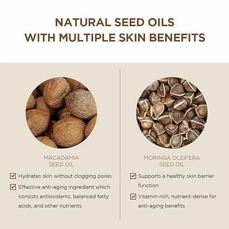 - olio di moringa ricco di vitamina C e nutrienti antiossidanti, aiuta a rafforzare la barriera cutanea