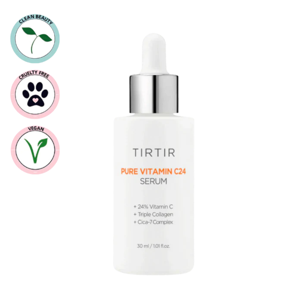TIRTIR Pure Vitamin C24 Serum è un siero viso con Vitamina C pura (Acido Ascorbico) al 23% ha un'azione anti-ossidante che contrasta i radicali liberi e quindi anche l'invecchiamento cutaneo e il foto-invecchiamento causati dalla eccessiva esposizione al sole; aiuta a contrastare le macchie scure e il melasma, illumina la pelle, rendendola più uniforme e omogenea. Questa sua azione è supportata dall'Arbutina che svolge un'azione levigante e uniformante del tono della pelle.